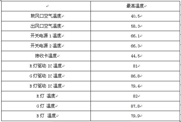實(shí)驗(yàn)溫度記錄表(單位℃,實(shí)驗(yàn)條件:40℃高溫房,亮度12000nit,全白靜止畫面)